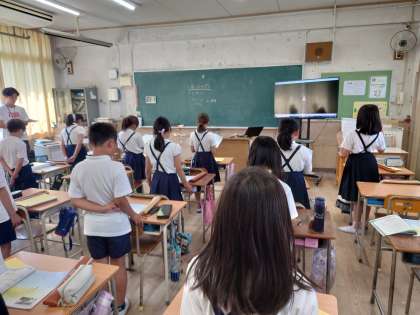 4年生が音楽をしていました。牧場の朝を歌っていました。