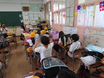 2年生が帰りの会をしていました。まもなく下校です。