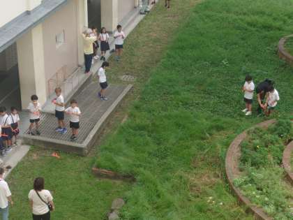 作品の提出をしたり、中庭で活動したり、配布物を配ったりと活動は様々です。