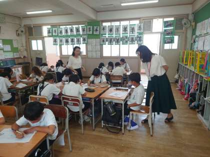 4年生が国語をしていました。教育委員会から吉川先生に来ていただき授業をしていただきました。色々な音読の仕方を教えていただきました。