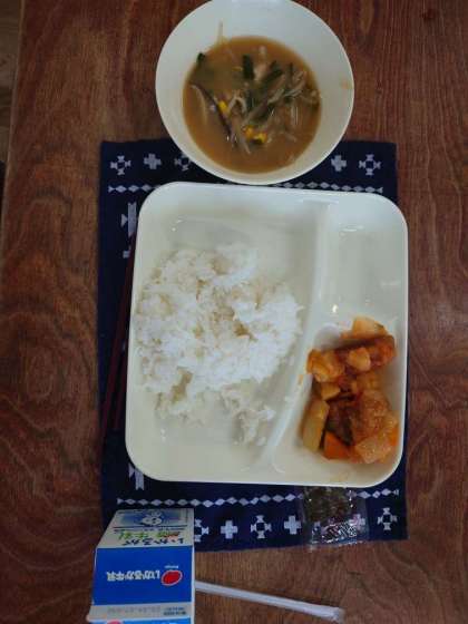 中華みそスープに、酢豚ということで今日は中華風献立です。