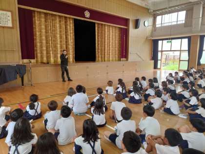 5時間目防犯訓練がありました。住吉警察の方も来ていただきました。