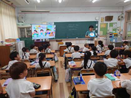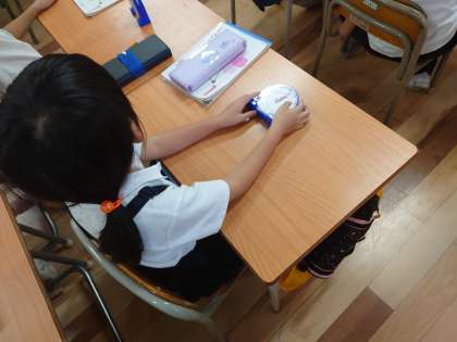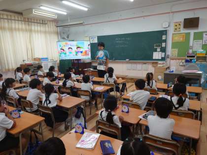 今日は学校公開、学校説明会があります。一年生は算数をしていました。時計の学習です。