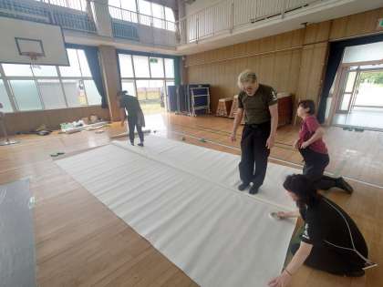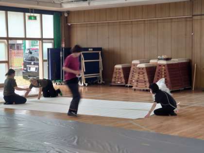 現在、3時間目6年生の活動に向けて、本日ご指導いただく、墨庵のみなさん、本校はぐくみネットの方々にも来ていただいて準備中です。