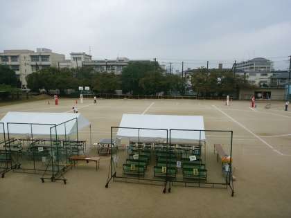 運動場に一部水溜まりがありますが、予定通り実施します。応援をよろしくお願いします。