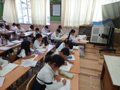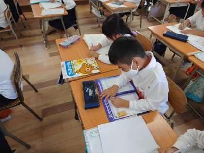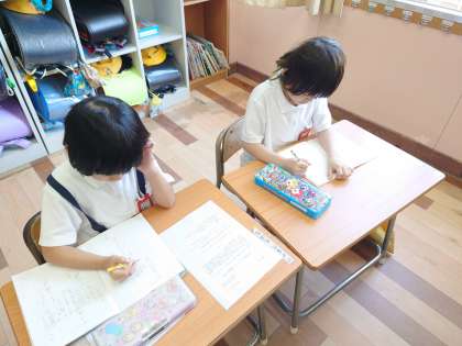 一年生が連絡帳を書いています。丁寧に書いていました。