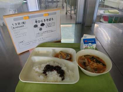 ご飯にかけて食べる牛ひじきそぼろは、しそを加えることで、風味がましています。
