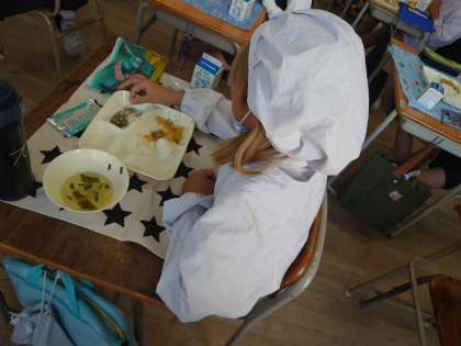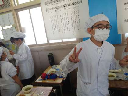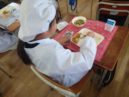ピリ辛丼は枝豆の緑、人参の赤と彩り鮮やかです。