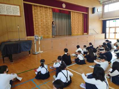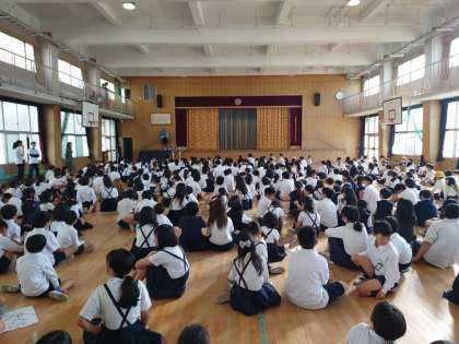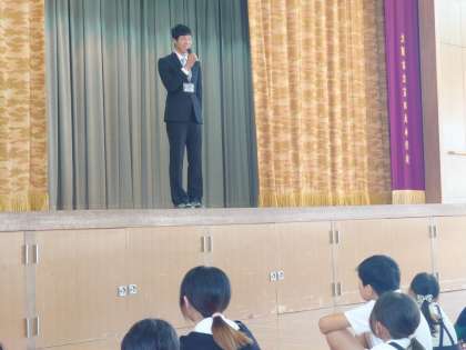 今日は講堂で集会がありました。集会の最後に実習生からあいさつがありました。今日が最終日です。