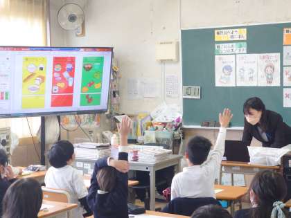 3年生が栄養指導を受けていました。朝ご飯について考えていました。