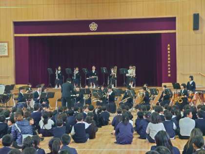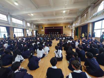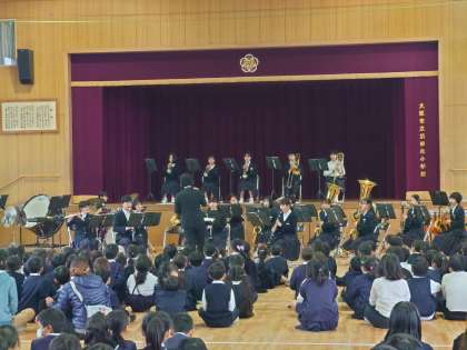 5時間目は音楽鑑賞会でした。東我孫子中の吹奏楽部の1、2年生が演奏してくれました。