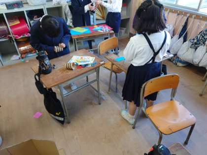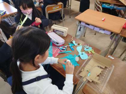 2年生お隣りは生活、おもちゃづくりをしていました。楽しそうです。