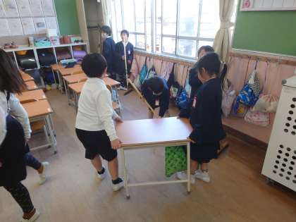 1年生、しっかりお掃除しています。