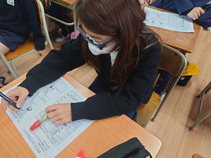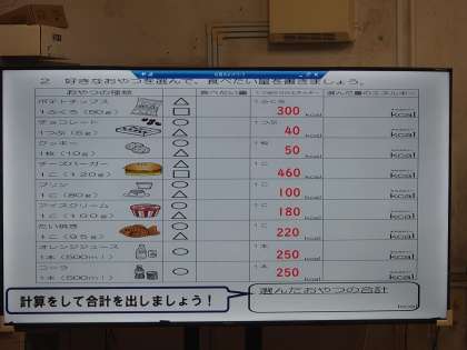 6年生が栄養指導を受けていました。おやつについて考えようです。おやつの役割について考えていました。