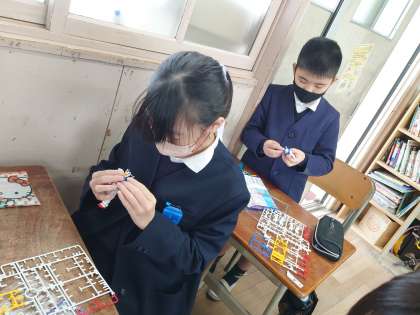 SDGsということで小学校5年生を対象にしてガンダムのプラモデルキットが届きました。切り取ったパーツの残った部分を回収し、再利用するそうです。