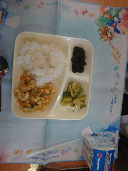今日はお知らせした通り、給食を食べ、掃除後1時40分頃の下校となります。