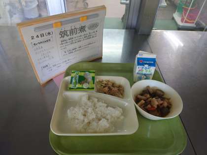 筑前煮は人参、ごぼう、こんにゃく、れんこん、さんどまめ、鶏肉が入っています。