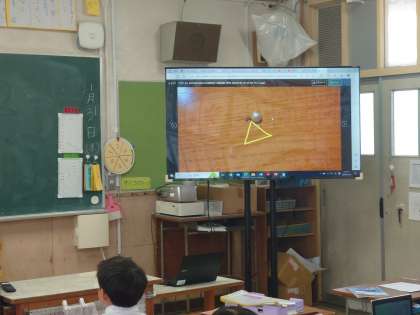 3年生が算数をしていました。昨日の宿題で家で三角形を見つけてきてタブレットで撮ってきたようです。正三角形や二等辺三角形の学習です。