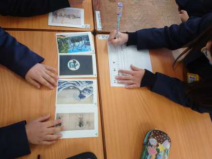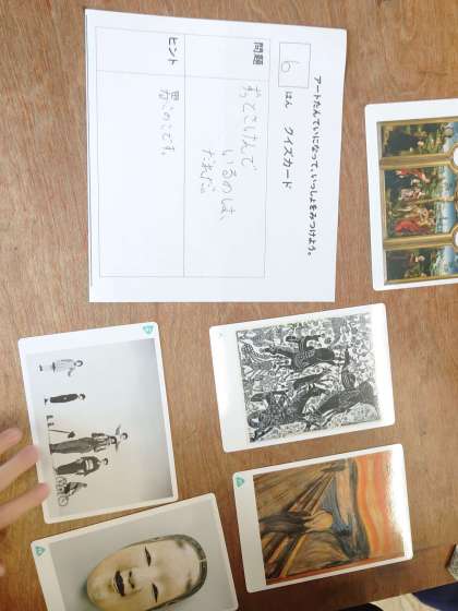 たくさんのカードを使って、それぞれの違いや同じところに気づかせ現在は問題を作っていました。5枚中3枚はフェイクカードです。