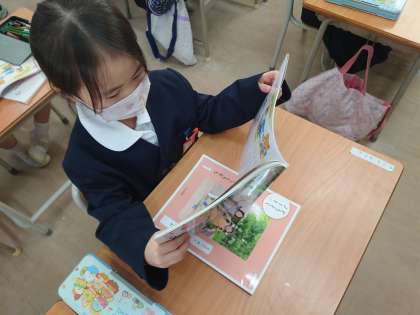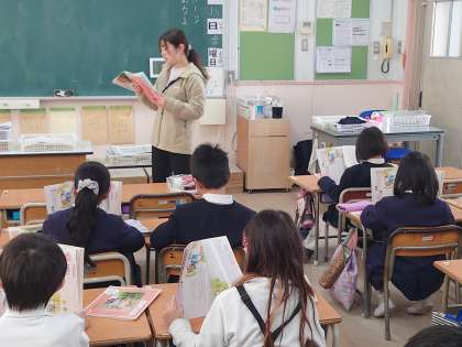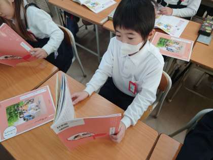 1年生が道徳をしていました。しっかりお話を聞いていましたよ。