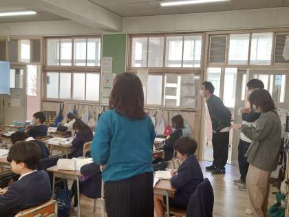 今日は公開授業に指定しているので他の先生も時間を見つけて見に来ています。