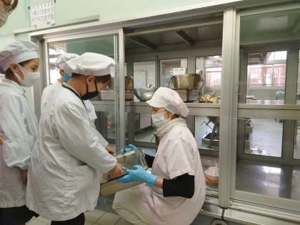 中華おこわは、しいたけ、栗、焼き豚が入っています。ごま油で香りをつけています。