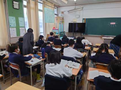 5年生が国語をしていました。教育センターから指導者の先生にお越しいただき授業を見てもらっています。