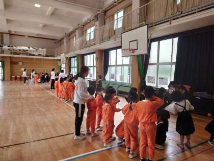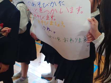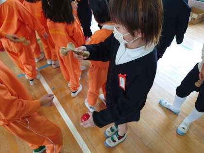 1年生が講堂で東よさみ幼稚園の子どもたちと交流していました。