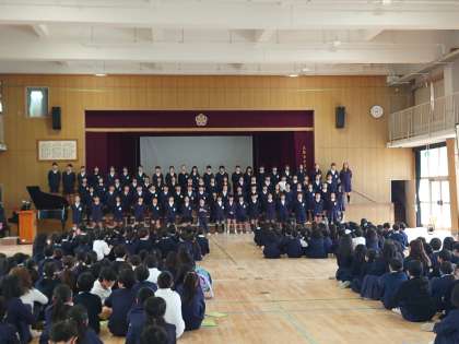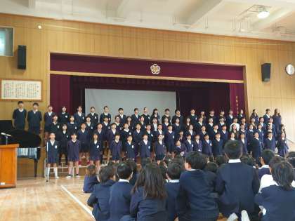 6年生から歌のお礼です。堂々とした姿、みんなで目に焼き付けました。
