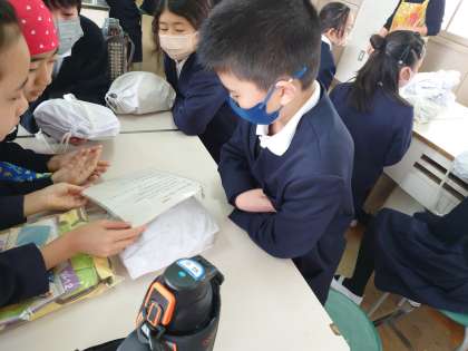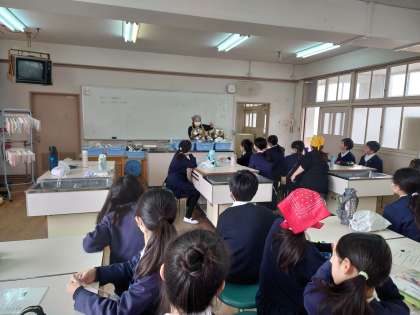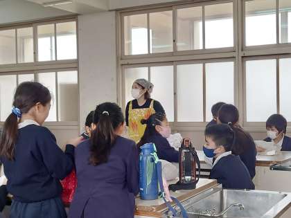 5年生が調理実習をしていました。白玉団子とお茶を今から調理します。白玉団子は白玉粉と豆腐で作ります。