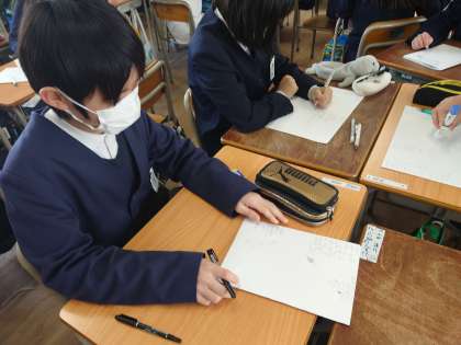 六年生お隣は調理実習の役割などを決めていました。