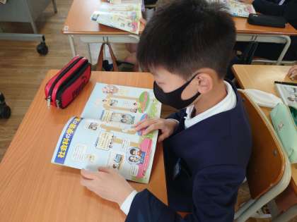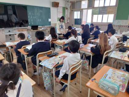 5年生が社会をしていました。5年生になって1回目の社会のようです。