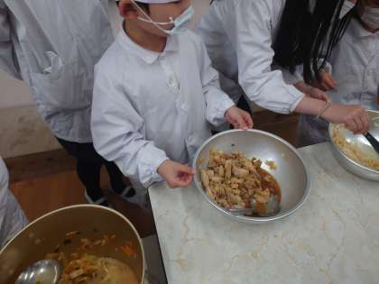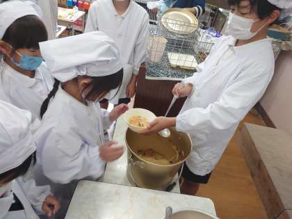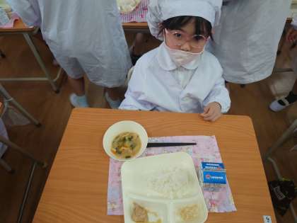 今日は少し遅れて行ったのですが1年生が小おかず入れていたようです。