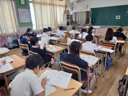 今日は大阪府の5、6年生で実施される、すくすくテストを受けています。6年生は理科、わくわく問題、5年生はそれに加えて国語、算数を受けています。