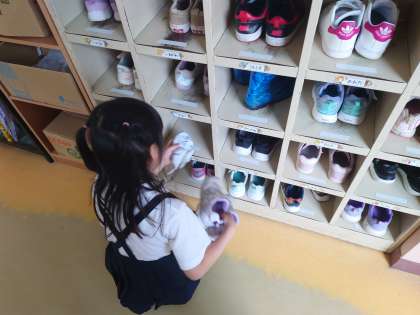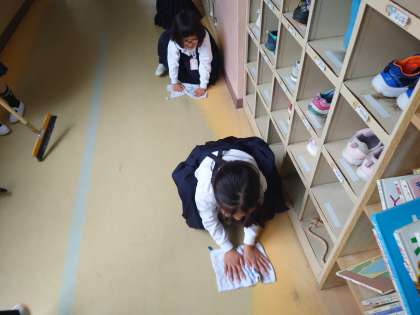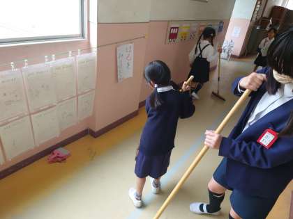 1年生、教室、廊下、靴箱など時間いっぱい頑張っています。