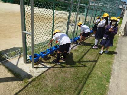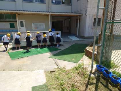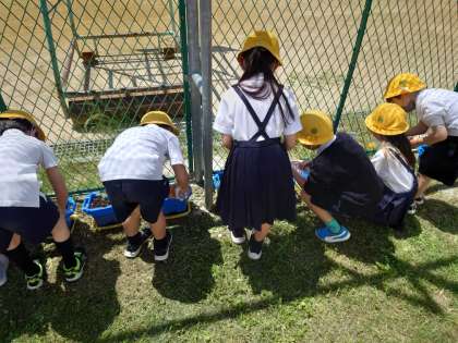 2年生が生活をしていました。プランターにミニトマトを植えていました。
