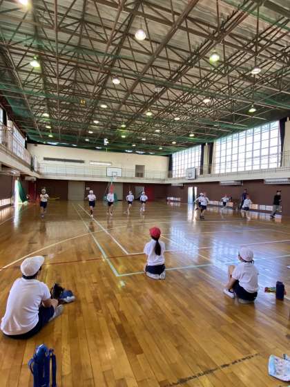 5年生、6年生がそれぞれの時間に東我孫子中学校体育館まで行き、シャトルランを行いました。中学校の体育館にはエアコンが入っています。