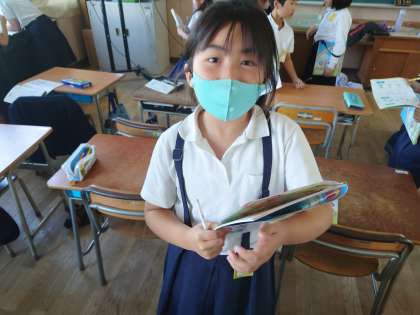 3年生は英語をしていました。ご機嫌いかがですとお互いに今の気持ちを伝え合っていました。ハッピーが多かったです。