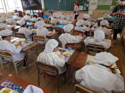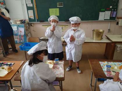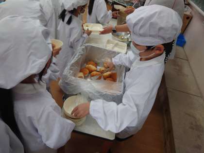 スパゲティミートソースです。パンは二分の一サイズになります。