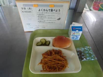 今日はカレースパゲティになるのでパンは二分の一サイズです。