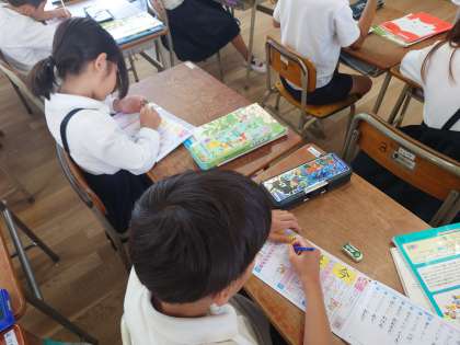 2年生が漢字を学習していました。親という字です。空書きやなぞり書きを何度かして書いていました。