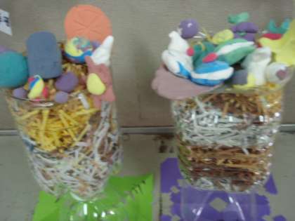 2年生は、図画工作科「すてきなパフェ」、算数科「かけ算」を行いました。「すてきなパフェ」では、自分なりの考えをお菓子で表現していました。