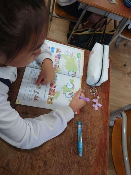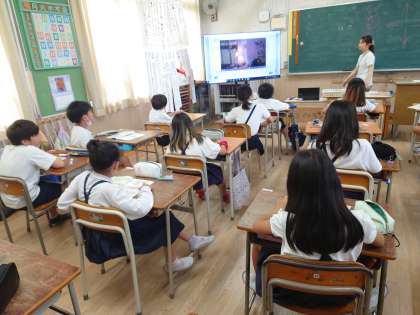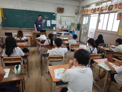4年生が外国語をしていました。フィリップ先生としていました。