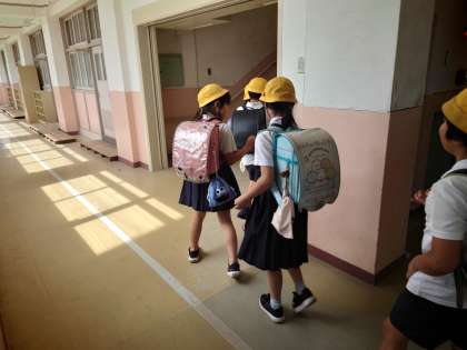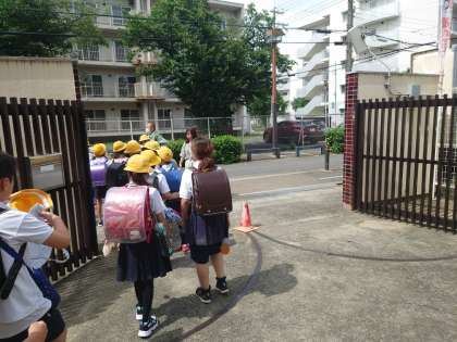 現在集団下校中です。
