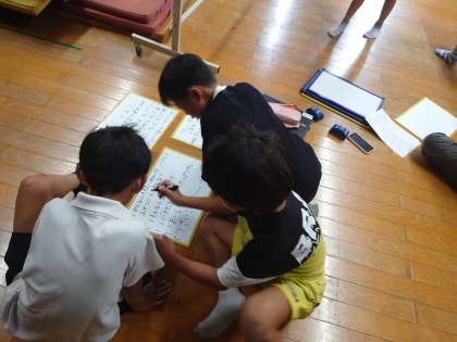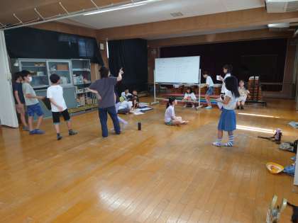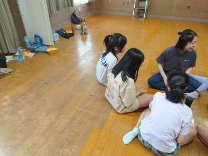 明日の臨海に向けてキャンプファイヤー係が集まって練習しています。