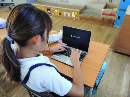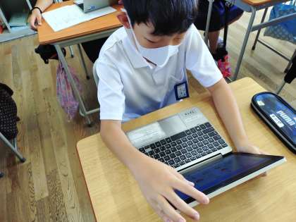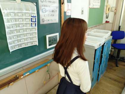 5年生が朝の会をしていました。まずは、日直さんが声をかけて心の天気を入れています。