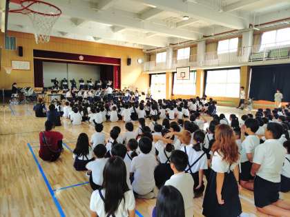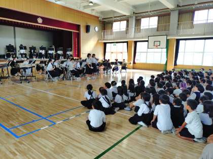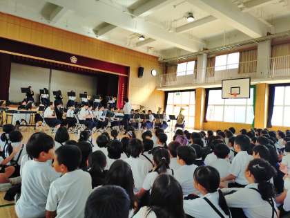 毎年この時期に演奏に来てくれます。苅田北小学校卒業生もいます。