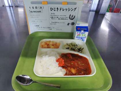 ハヤシライスです。小麦粉の代わりに上新粉でとろみをつけています。