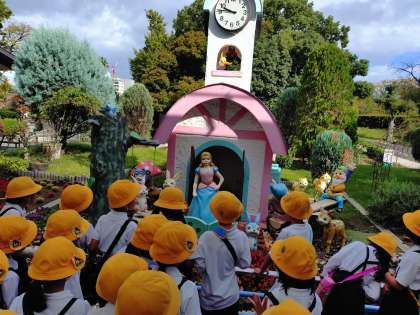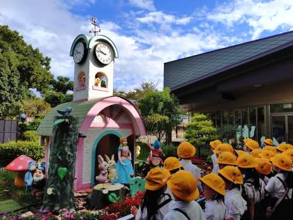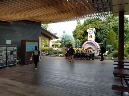 天王寺動物園に到着しました。時計台で記念撮影準備中です。これから園内をまわります。