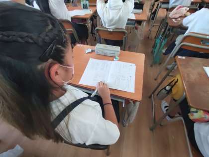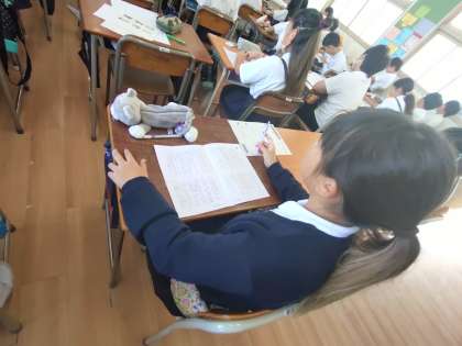 6年生が経年調査の国語の昨年度の問題に取り組んでいました。教育センターから指導者の先生にきていただいて教えてもらっています。